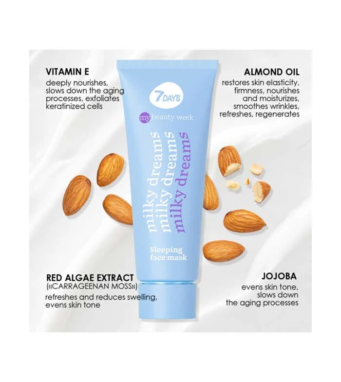 Ce masque de nuit à l’huile d’amande douce et à la vitamine E pour nourrir intensément et activer les processus de régénération de la peau.