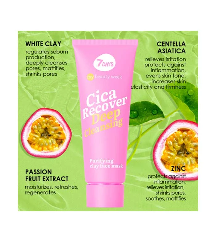 7 Days Masque purifiant à l’argile avec Centella Asiatica, zinc et kaolin pour réduire les pores et matifier la peau du visage.