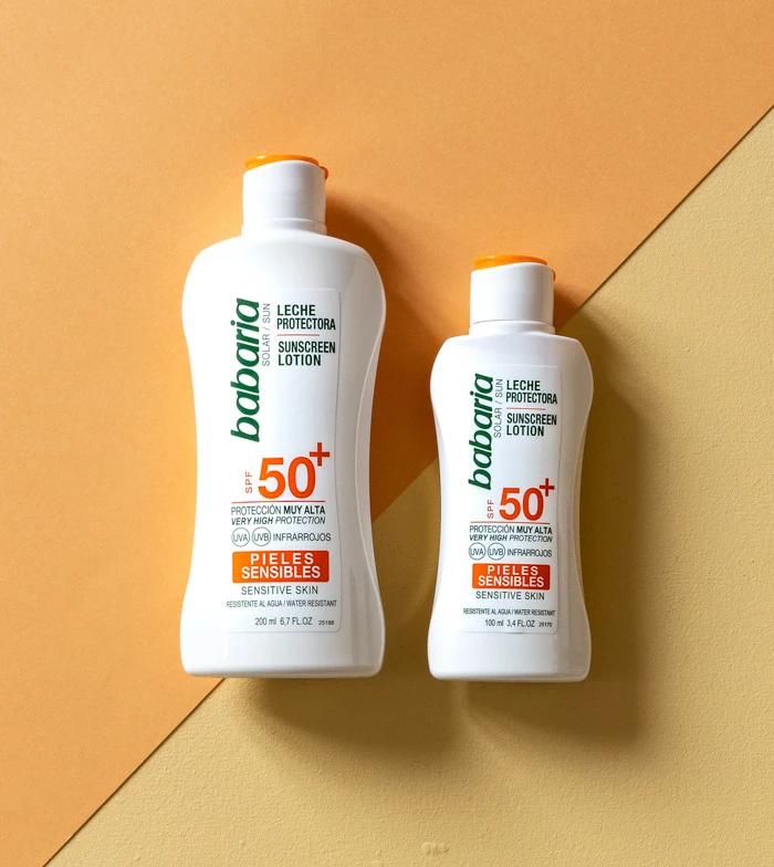 Lait de protection solaire pour peaux sensibles SPF50 de Babaria.