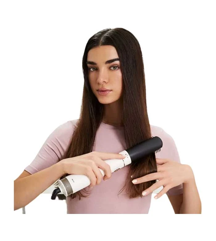 Il n’est pas nécessaire d’utiliser d’abord le sèche-linge ; Après avoir séché vos cheveux, vous pouvez éliminer l’excès d’eau en utilisant Air Wonder avec le concentrateur Dry, qui dirige le flux d’air pour un séchage efficace.