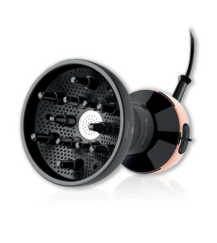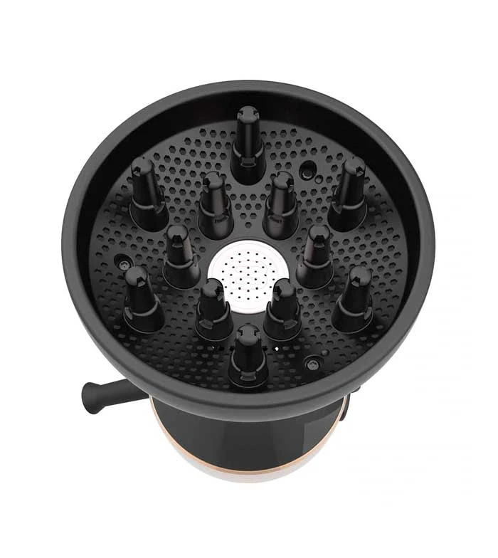 Grâce à l’effet synergique de la grille perforée, qui répartit uniformément l’air, et des 12 longs doigts, qui maintiennent la forme et l’ordre des boucles, les cheveux sèchent en douceur, vos boucles ne se cassent pas et conservent leur élasticité naturelle!