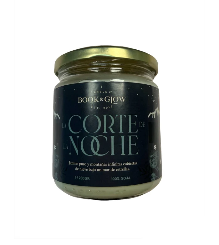 Bougie de soja de la collection Extraordinary Worlds de Book and Glow. La Cour de Nuit.