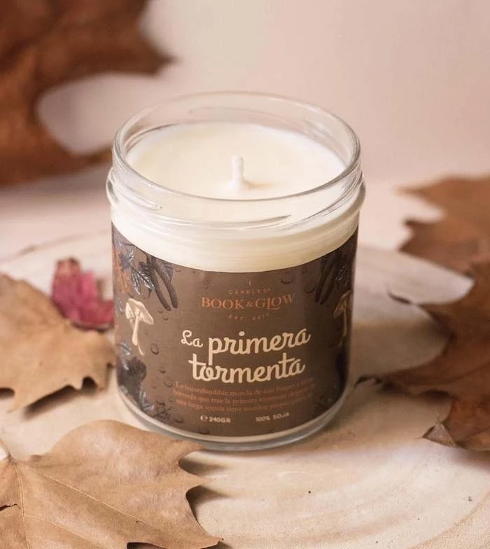 Bougie de soja de la collection Perfect Moments de Book and Glow. Ancienne bibliothèque.