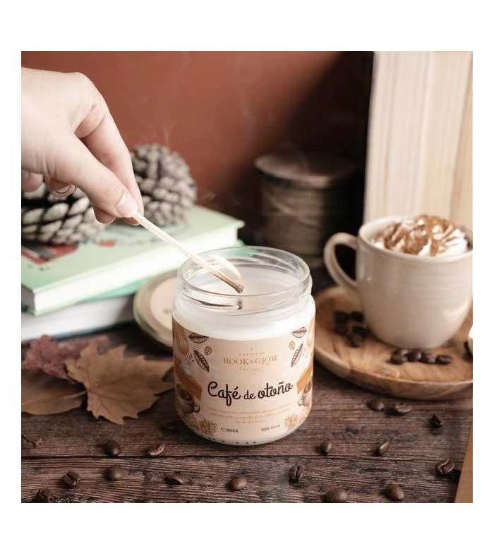 Bougie de soja végétalienne Café d’automne par Book and Glow – Café doux, citrouille et épices