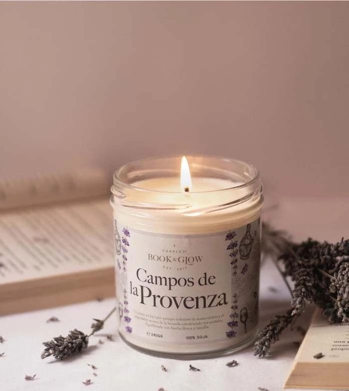 Bougie de soja de la collection Book and Glow Wanderlust. champs de provence