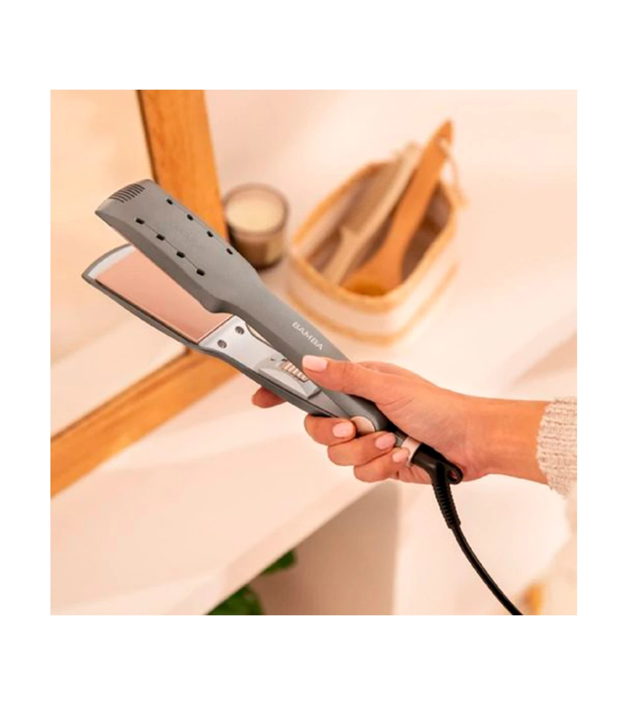 Plaques d’une largeur de 55 mm pour que vous puissiez prendre plus de cheveux par passage et les garder brillants et flexibles. Plaques 3D.