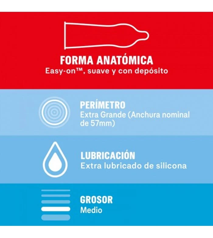 Les préservatifs Durex Sensitive Soft XL ont un périmètre extra large pour que vous puissiez être plus à l’aise tout en profitant de relations sexuelles sans soucis avec votre partenaire avec un plus grand confort.