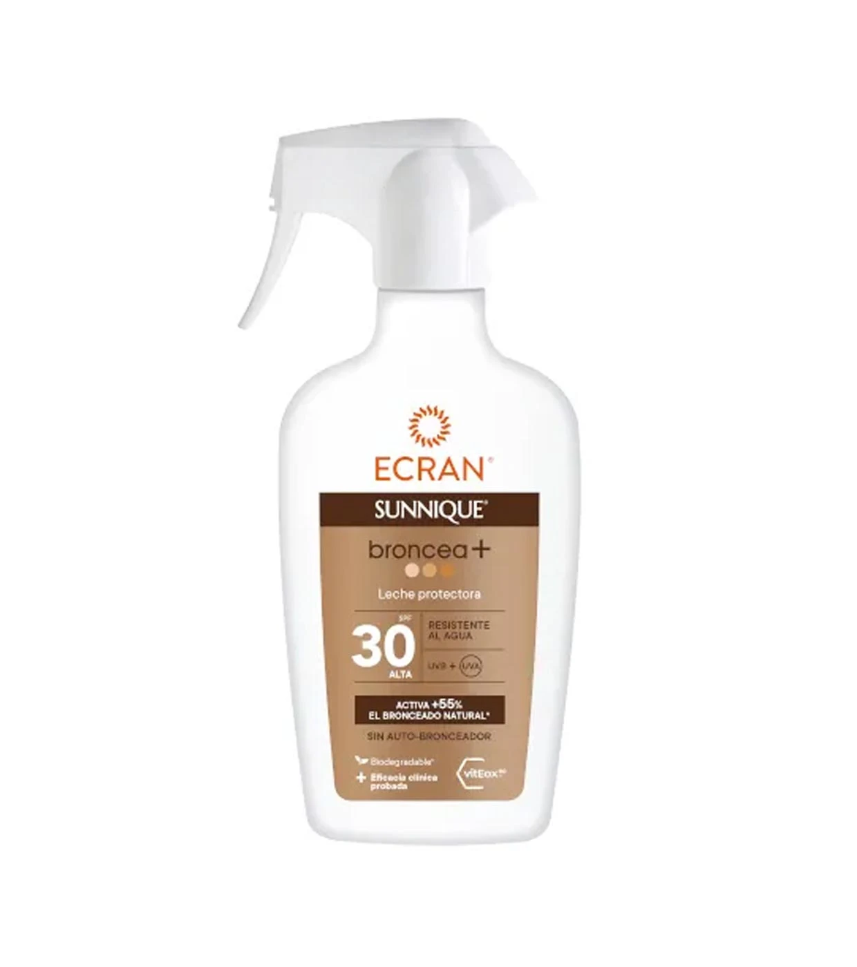 Le lait protecteur Ecran renforce la mélanine naturelle et laisse un bronzage naturel et uniforme.