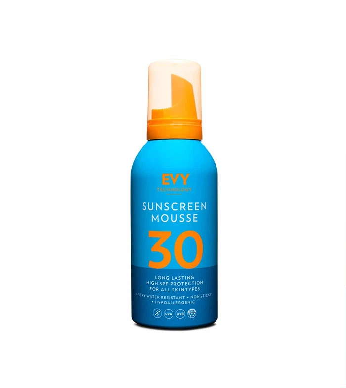 La crème solaire Sunscreen Mousse SPF 30 de Evy Technology a une texture mousse ultra-légère pour le visage et le corps, qui offre une protection solaire à haut spectre extraordinairement fiable contre les rayons UVA/UVB grâce à sa technologie médicale brevetée.