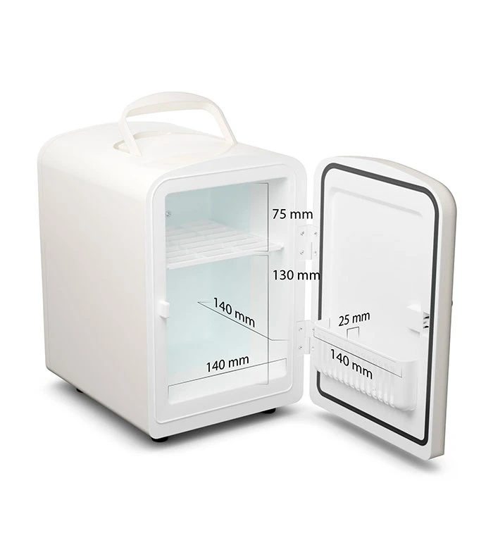 Un mini-réfrigérateur original pour cosmétiques, idéal pour conserver une grande variété de produits cosmétiques au réfrigérateur et dans des conditions optimales (crèmes et masques pour le visage, ampoules pour le visage, sérums, crèmes contour des yeux, maquillage, crèmes pour le corps, brumes et sprays pour le visage, rouleaux et pierres, beauté bio avec des ingrédients naturels, etc.).