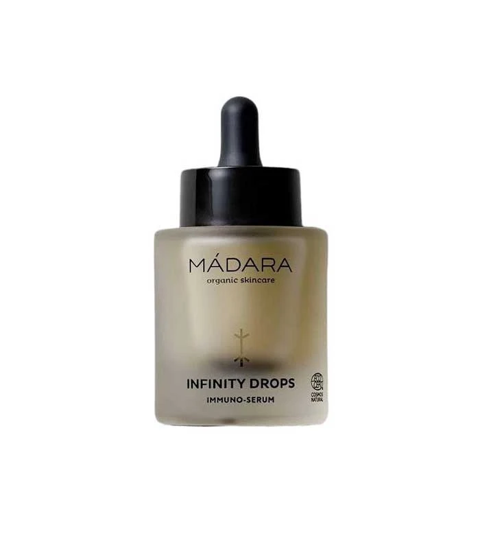 Sérum immunitaire stimulant immunitaire Infinity Drops de Mádara qui agit pour renforcer la barrière protectrice de la peau et équilibrer son microbiome.