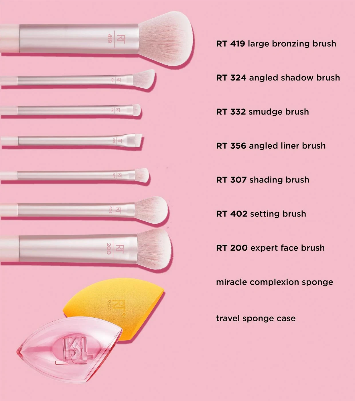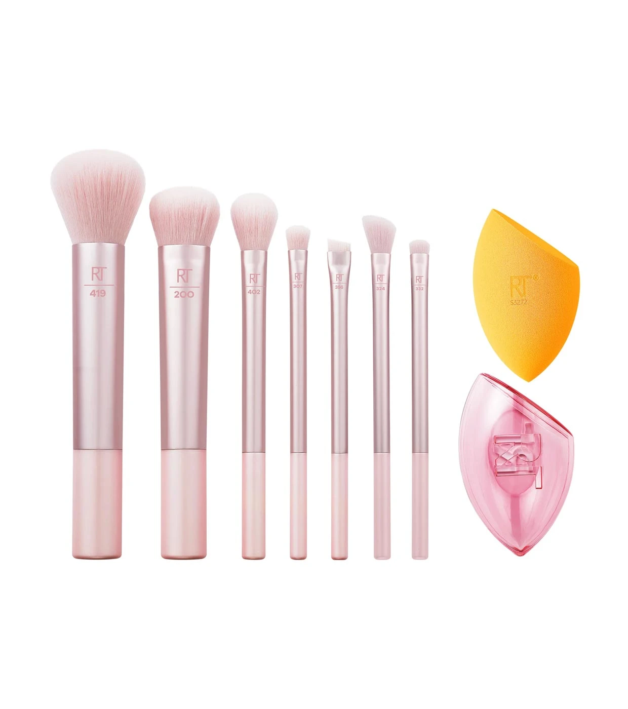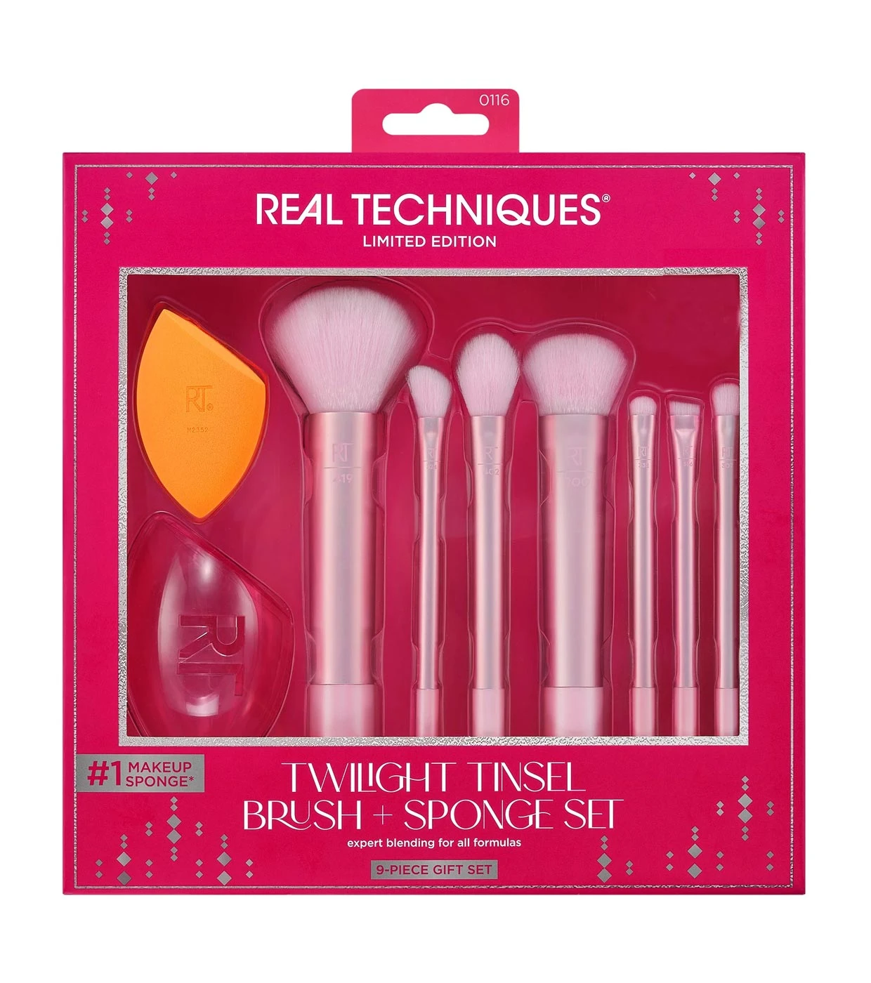 L’ ensemble de pinceaux et d’éponges Real Techniques Twilight Tinsel Brush + Sponge comprend 9 outils de maquillage sélectionnés pour créer une infinité de looks pour le fond de teint, les joues et les yeux, afin que vous puissiez briller toute la nuit.
