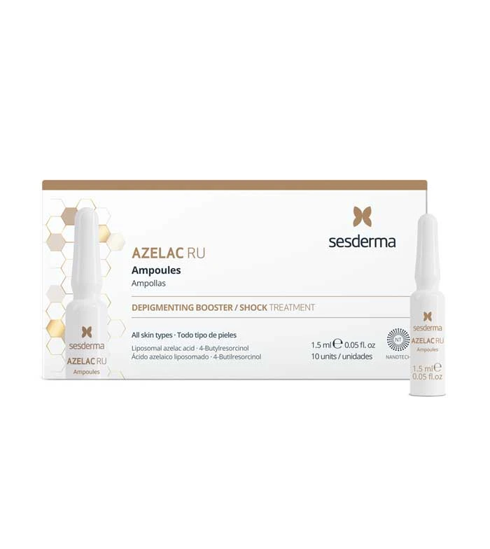 Pack de 10 ampoules de booster dépigmentant Azelac Ru de Sesderma, indiqué pour tous les types de peau.
