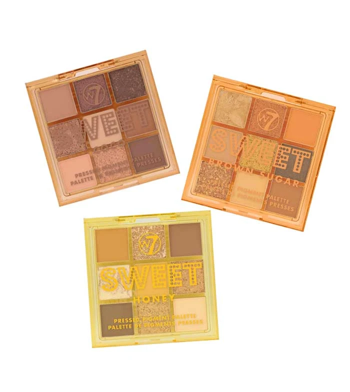 Cette fois, W7 nous propose un coffret cadeau composé de 3 célèbres palettes de fards à paupières Sweet.